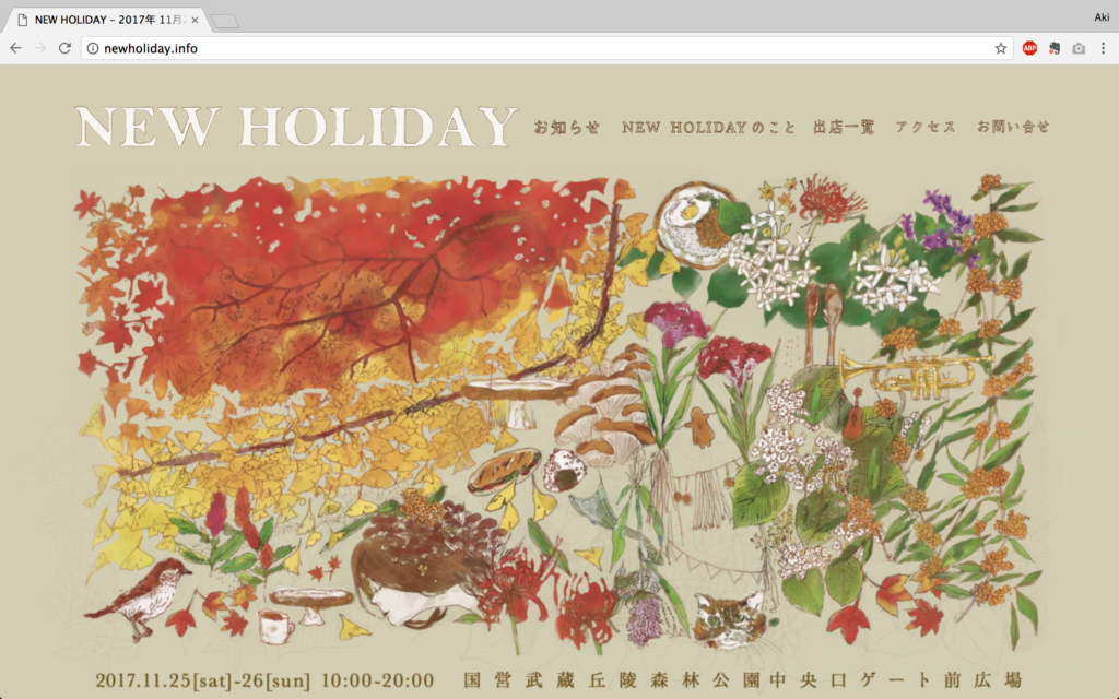 カフェやクラフト作家などが出店するイベントのグラフィックデザインを担当。実際に会場に生息する秋の植物や、イベント内容と関連した食べ物などのモチーフをイラスト化しメインビジュアルとしました。かわいらしさだけではなく、繊細なタッチを意識することで、他のクラフト系イベントとの差別化を図りました。